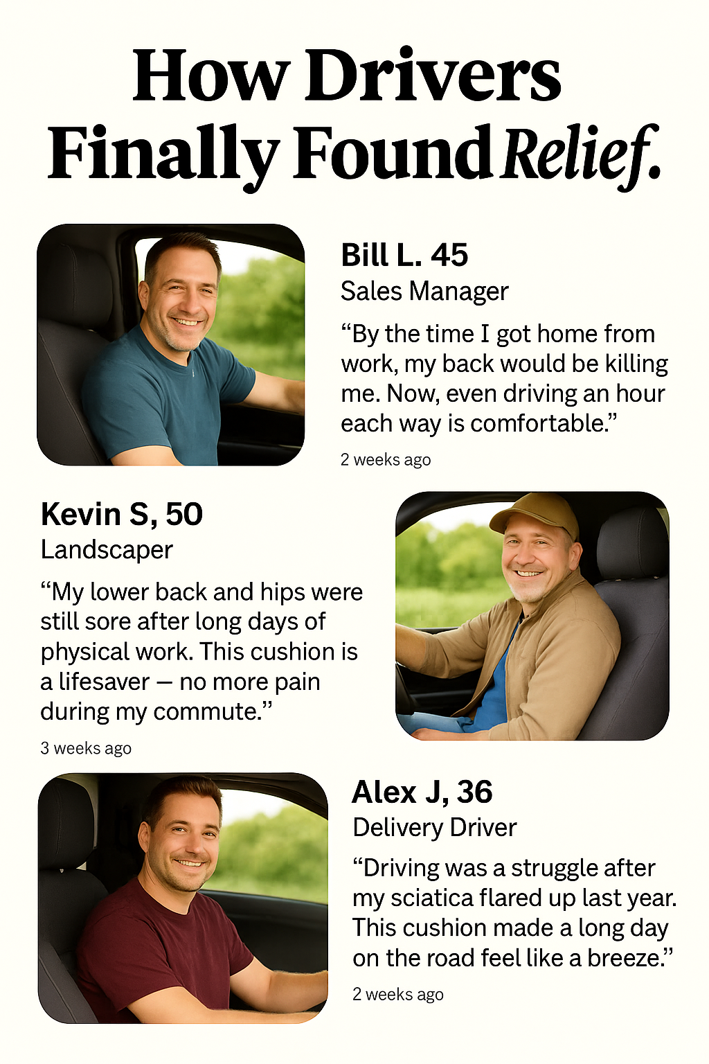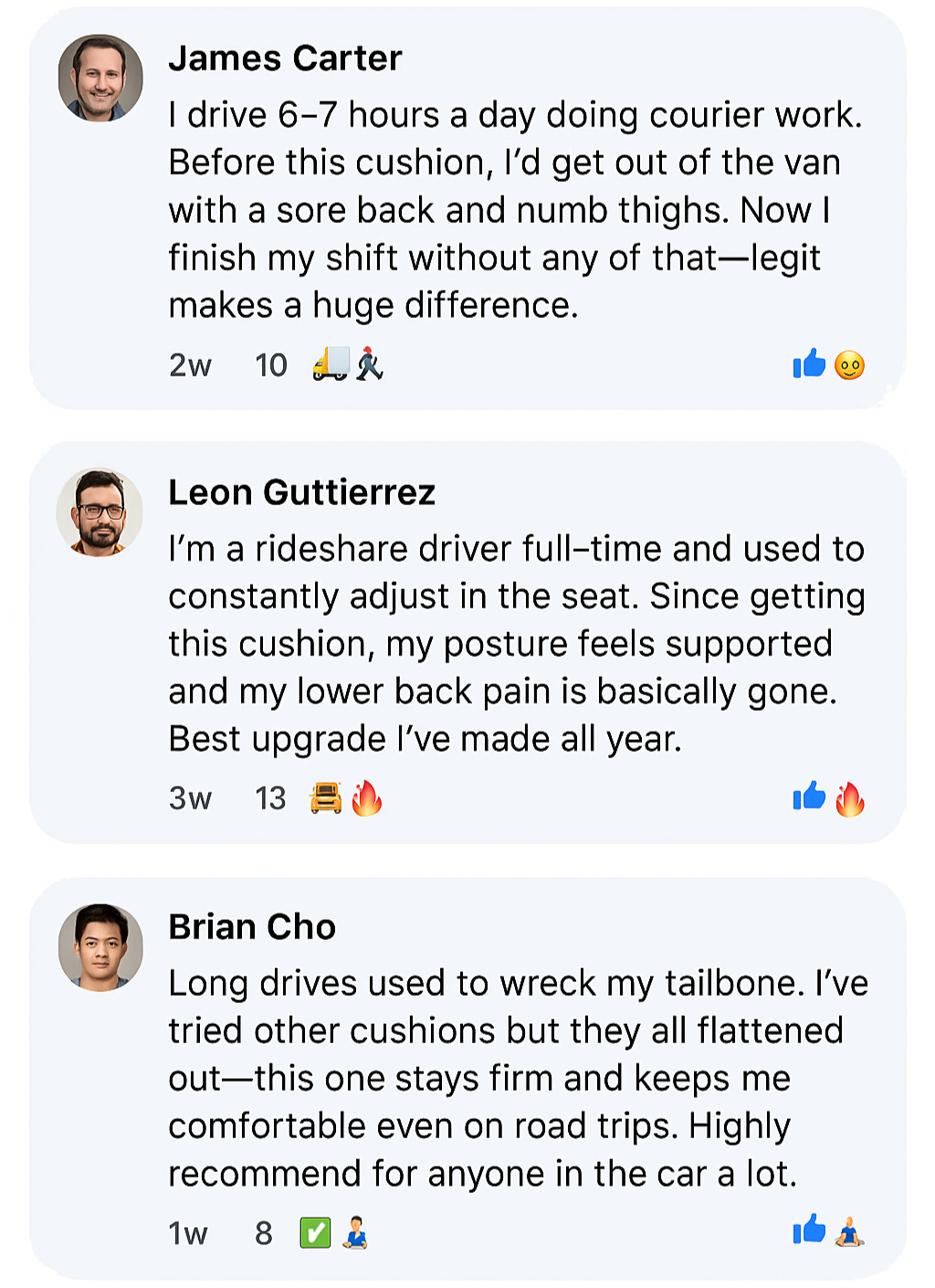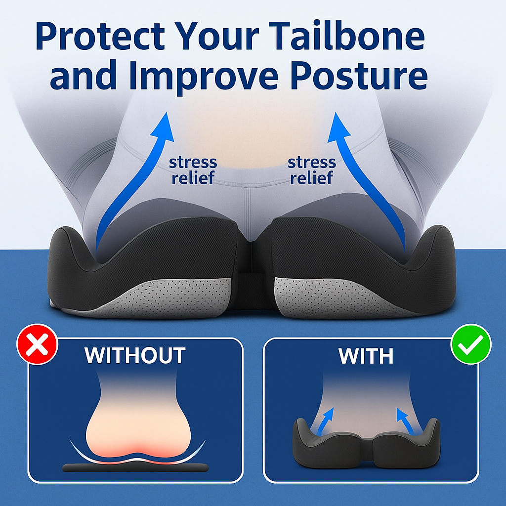 “I sit 10+ hours a day for work and used to dread every meeting. This cushion changed everything — no more numb legs or tailbone pain.”